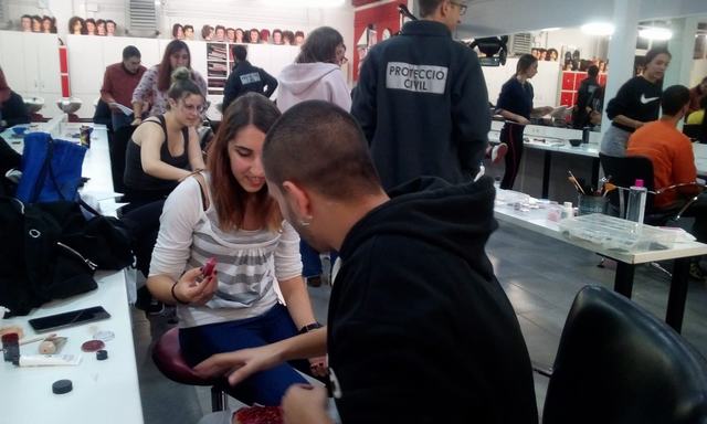 Els professors i alumnes del cicle de perruqueria i cosmètica capil·lar van participar, amb els alumnes de TES, la nit del passat 27 de novembre en un simulacre organitzat per foment i protecció civil, juntament amb les forces de seguretat i sanitàries de la zona, al túnel de la B-20 realitzant les caracteritzacions. L'experiència va ser molt profitosa.