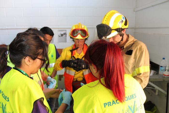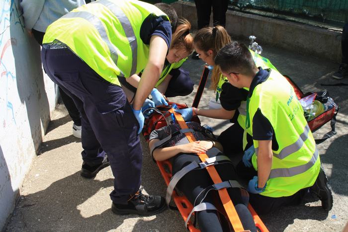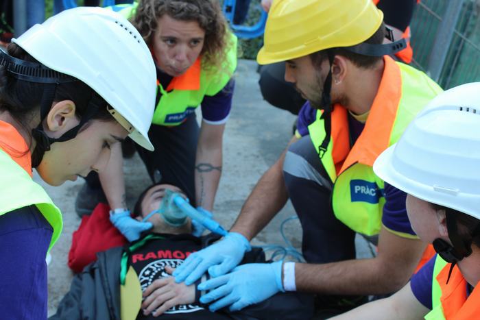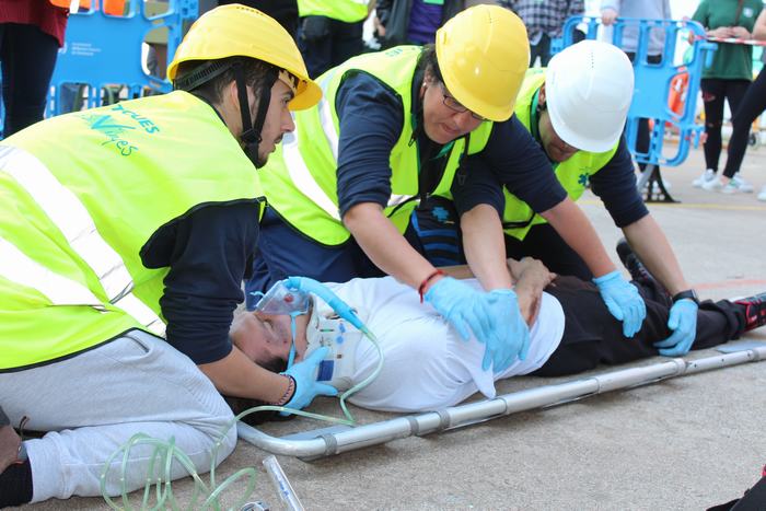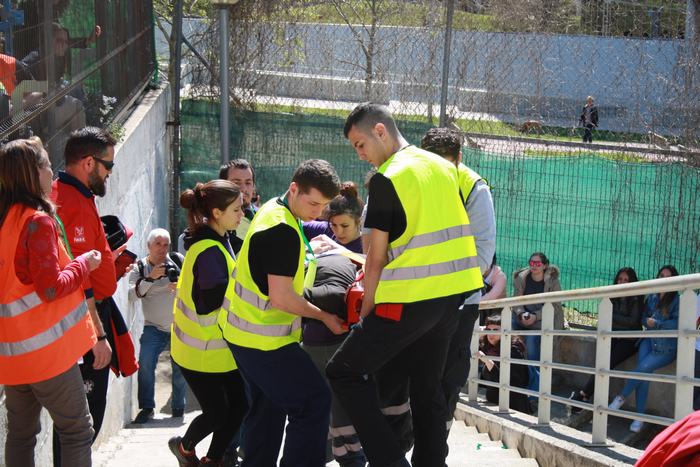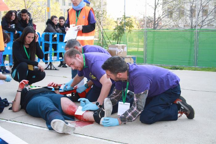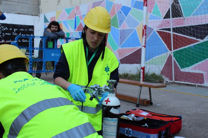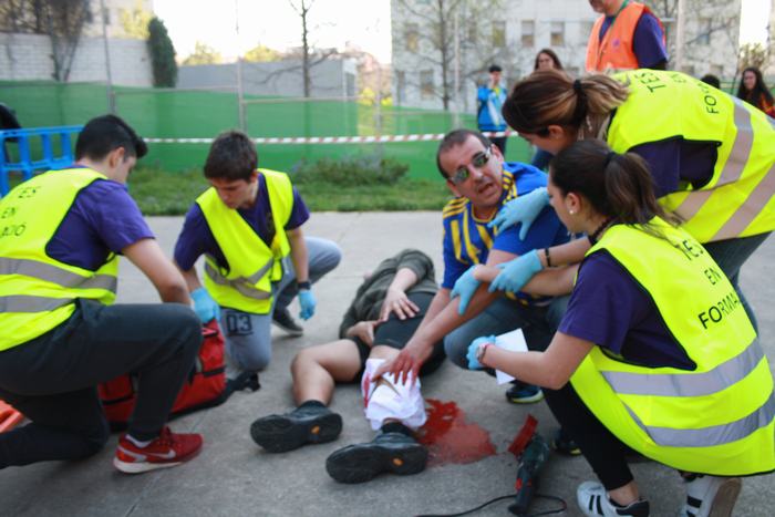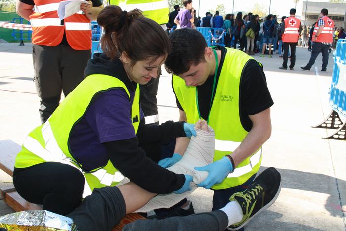 El passat dia 4 d’abril varem celebrar al nostre institut el “1r concurs inter centres de tècniques assistencials i de rescat per alumnes de TES”. Es tracta d’una iniciativa pionera dins el CF de TES, que va tenir molt bona acollida per part del centres convidats a participar. Les xifres parlen soles: 8 instituts participants, a més del nostre, amb 17 equips i uns 400 assistents, entre concursants, figurants, públic i observadors convidats. I les impressions recollides “a peu de pista” no poden ser més positives: tothom va lloar tant la iniciativa, com l’organització. Els equips concursaven en tres categories diferents (alumnes de 1r curs, alumnes de 2n curs i alumnes professionals), i havien de resoldre dues situacions assistencials simulades: accidents amb fractures, ferides, reanimacions, etc, amb dos nivells de complexitat. |