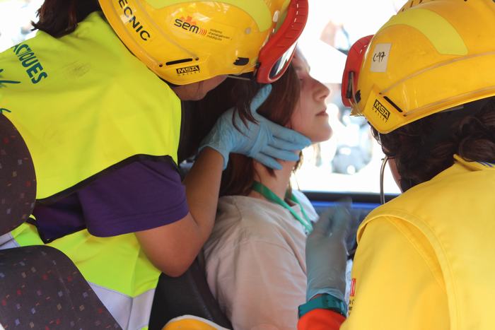 Després del concurs i abans del lliurament dels premis, vam poder gaudir d’una exhibició d’extracció vehicular en cas d’accident de trànsit, a càrrec de Josep Ferrés i Aurora Fontova, guanyadors del Campionat de Trauma de Catalunya.