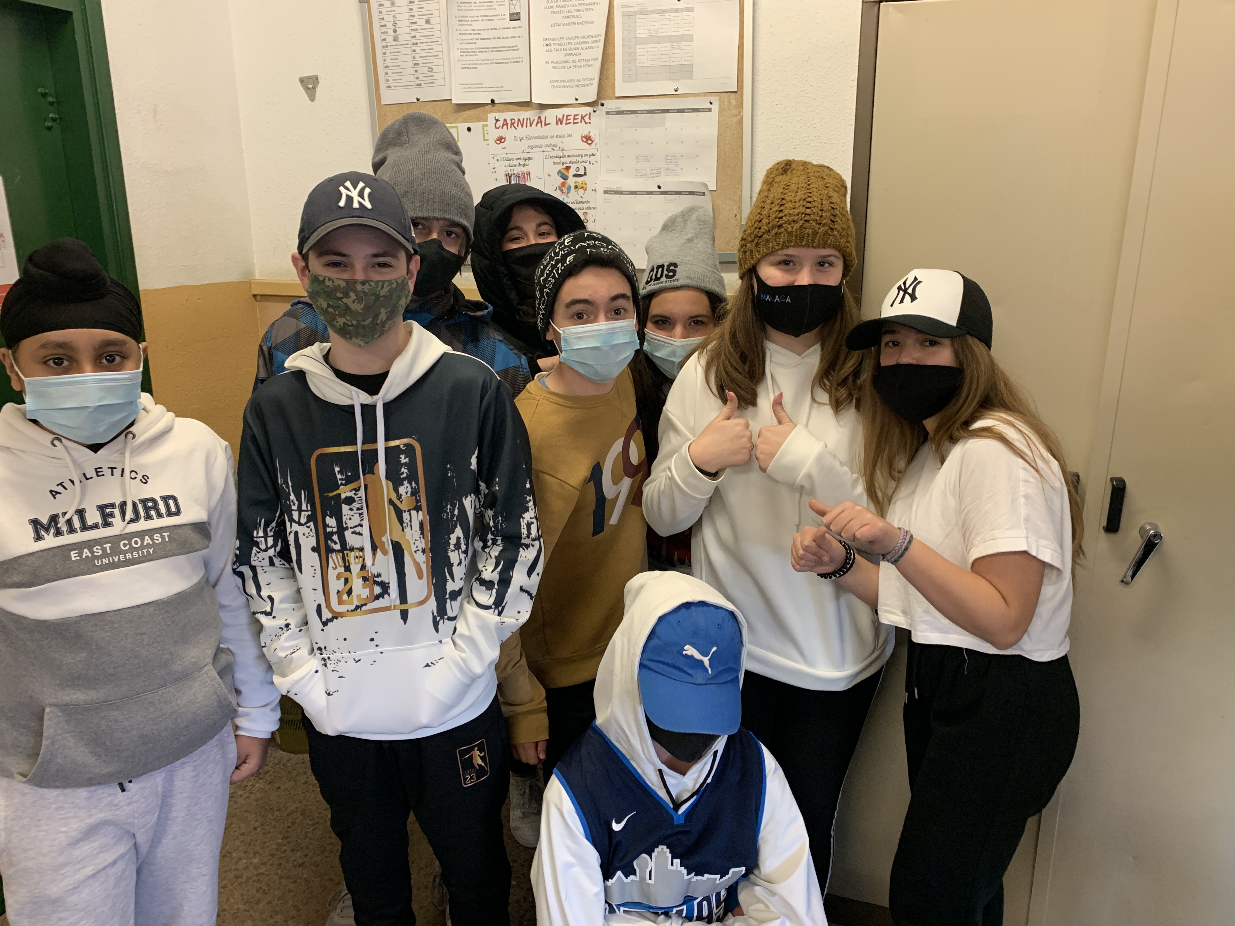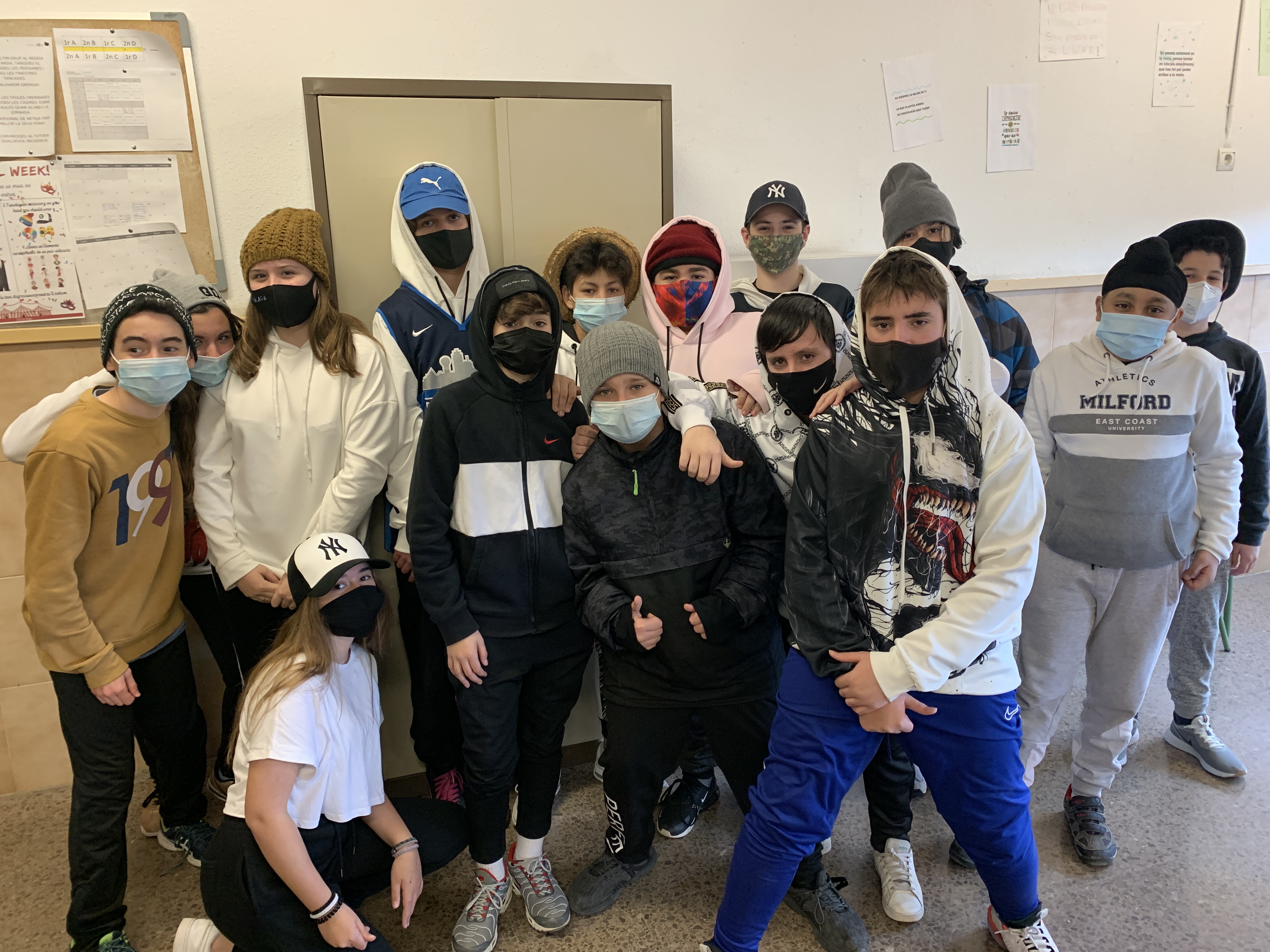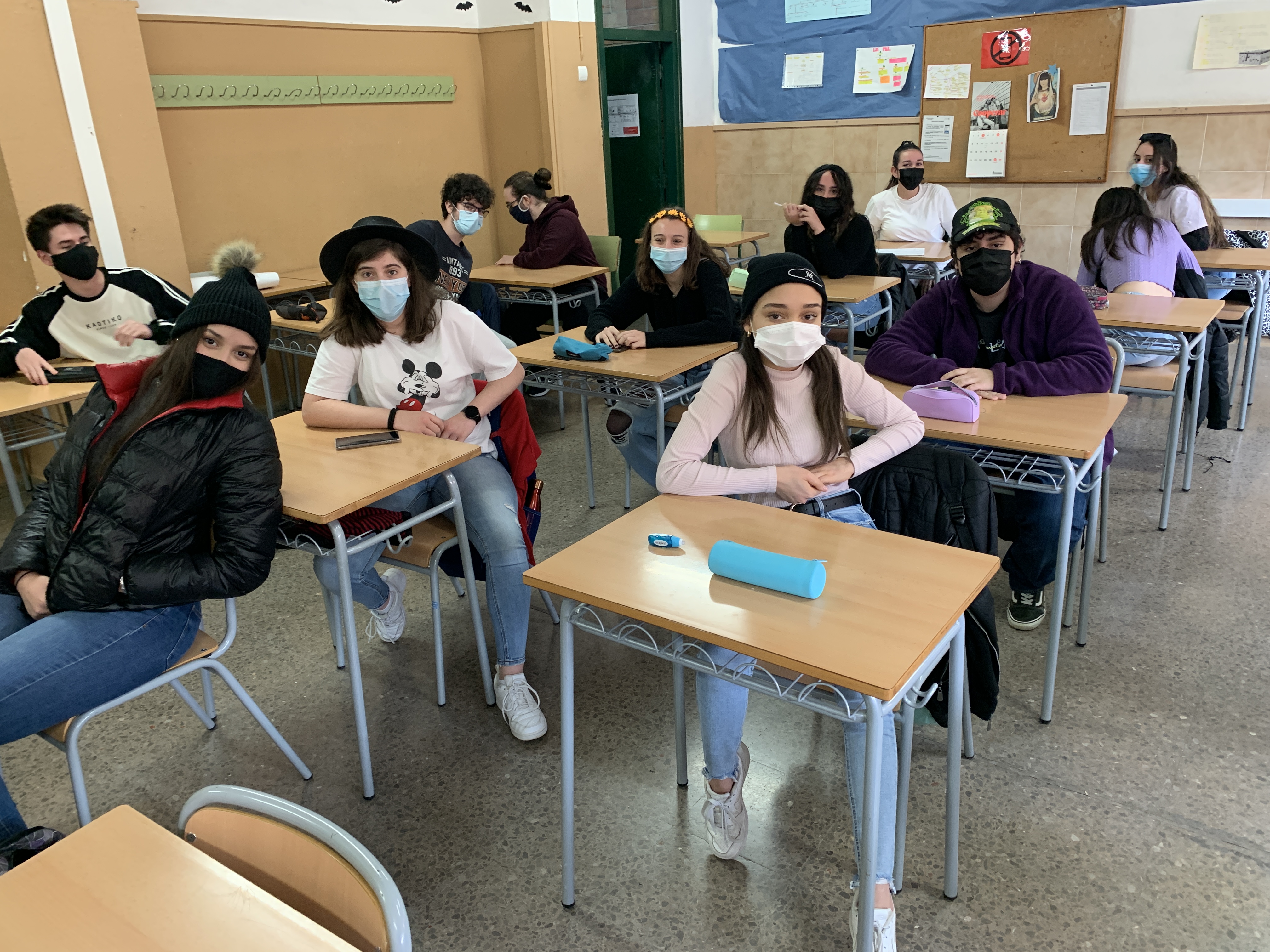 Avui, la consigna era venir a l'institut amb qualsevol cosa al cap. La gran majoria dels alumnes així ho han fet, i aquesta vegada, també molts dels profes.