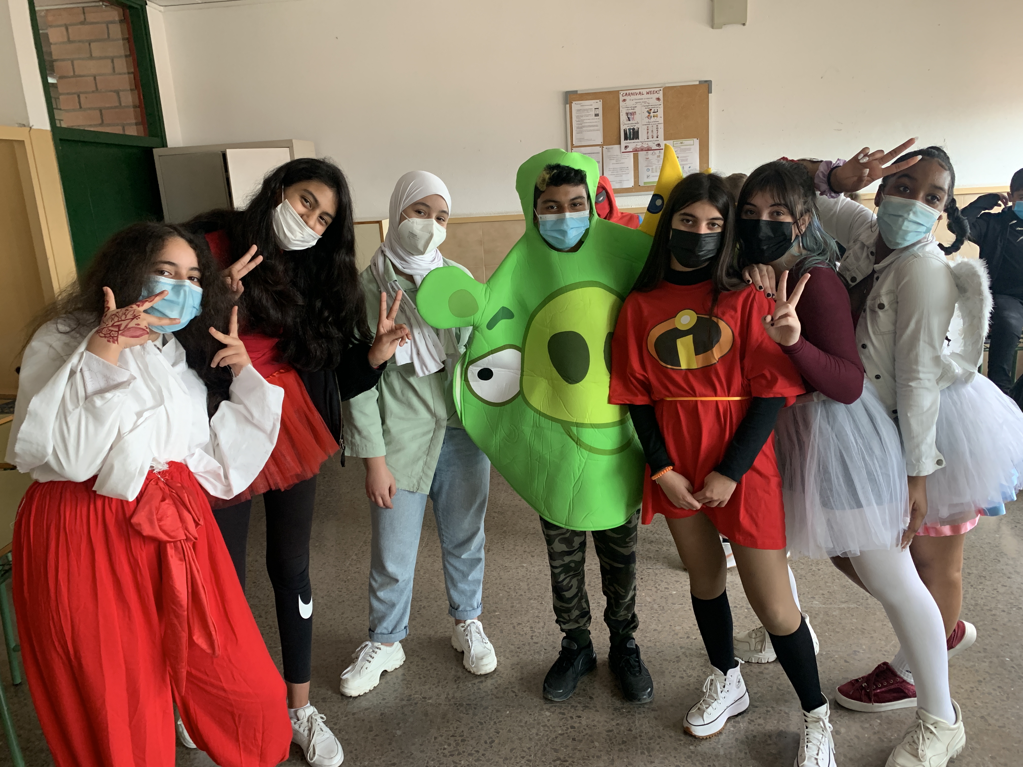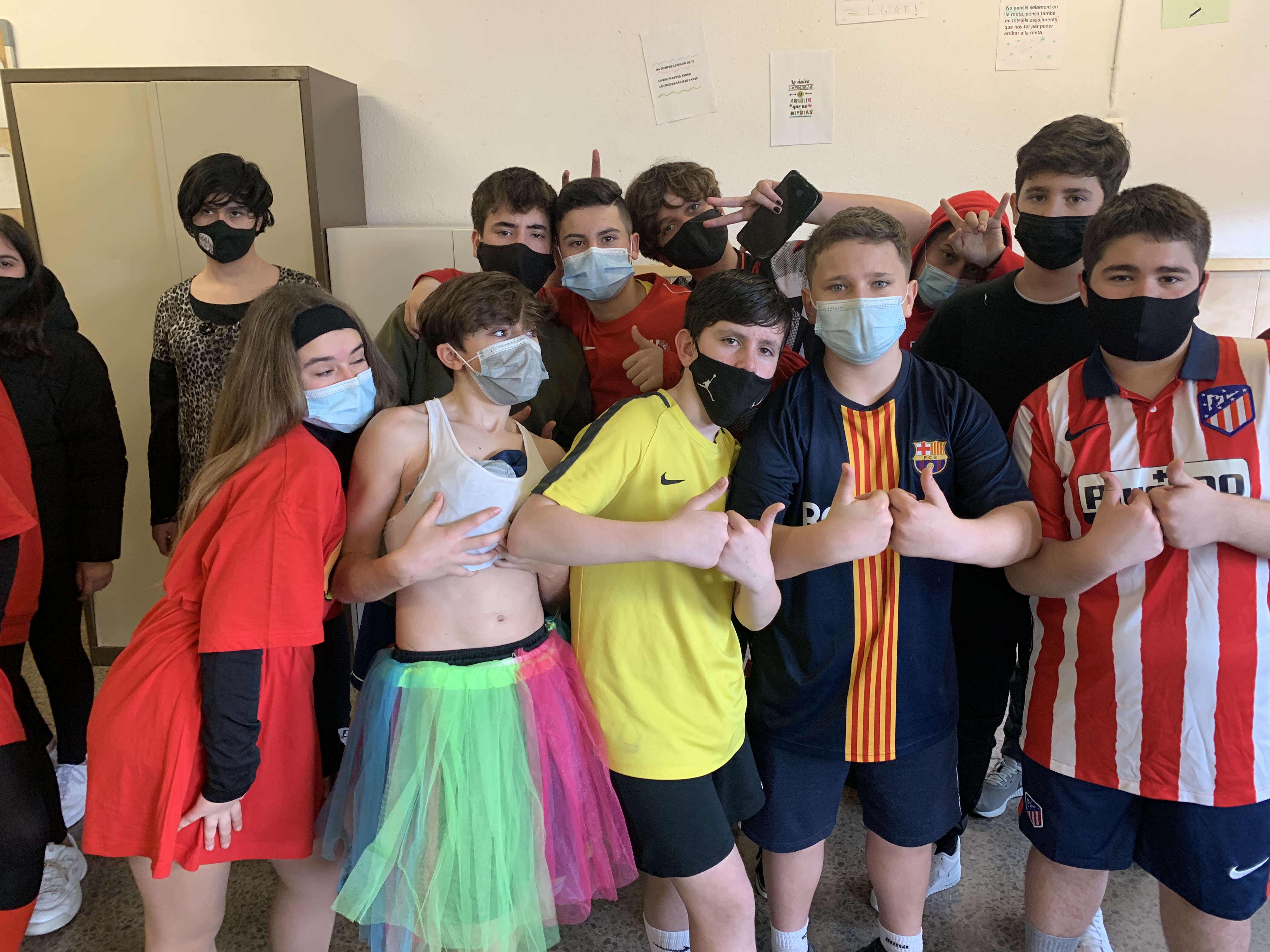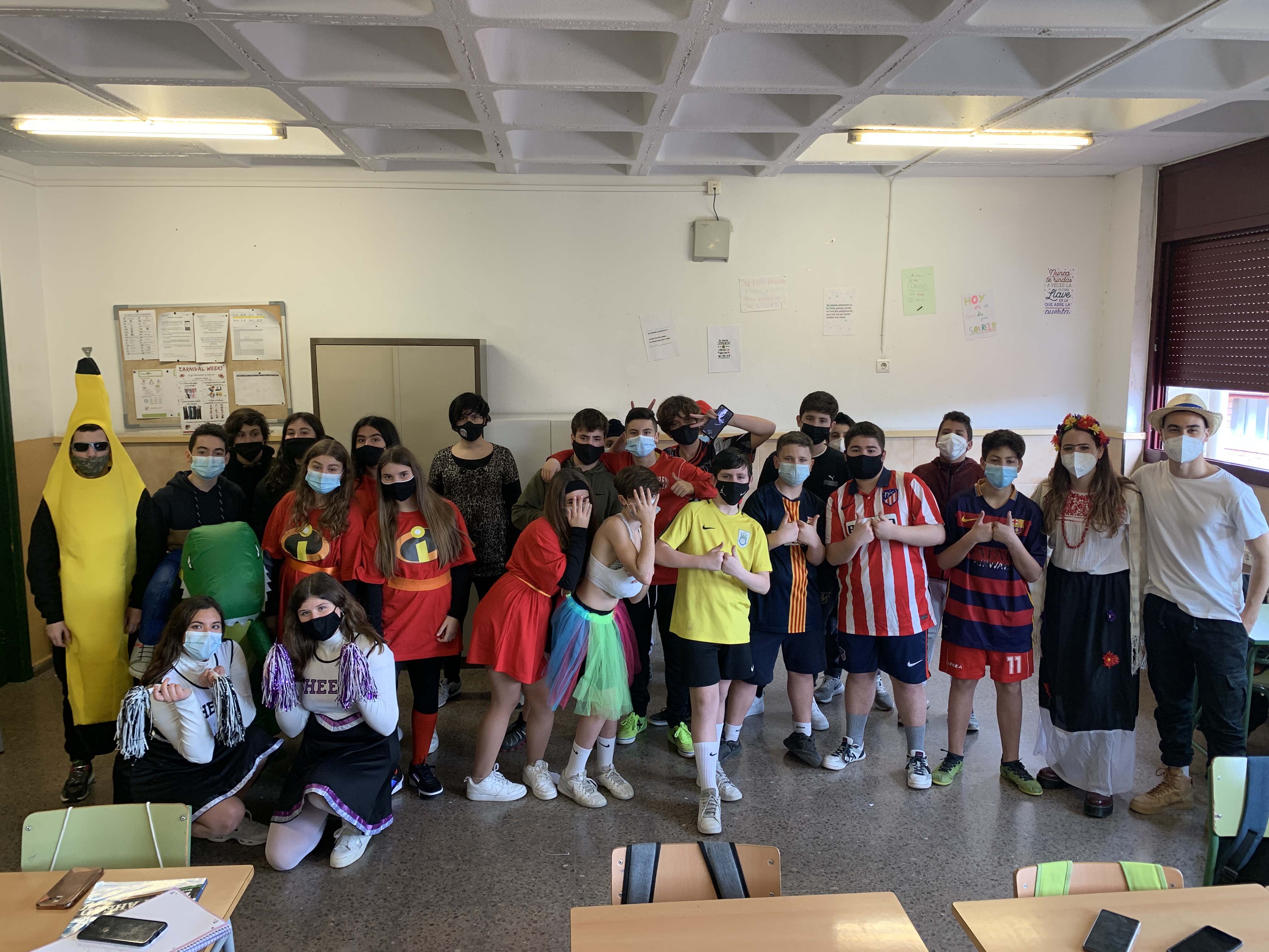 Avui, no hi havia consigna. El disfraç era lliure. Algunes classes han fet el mateix disfraç per tal de fer un ball.