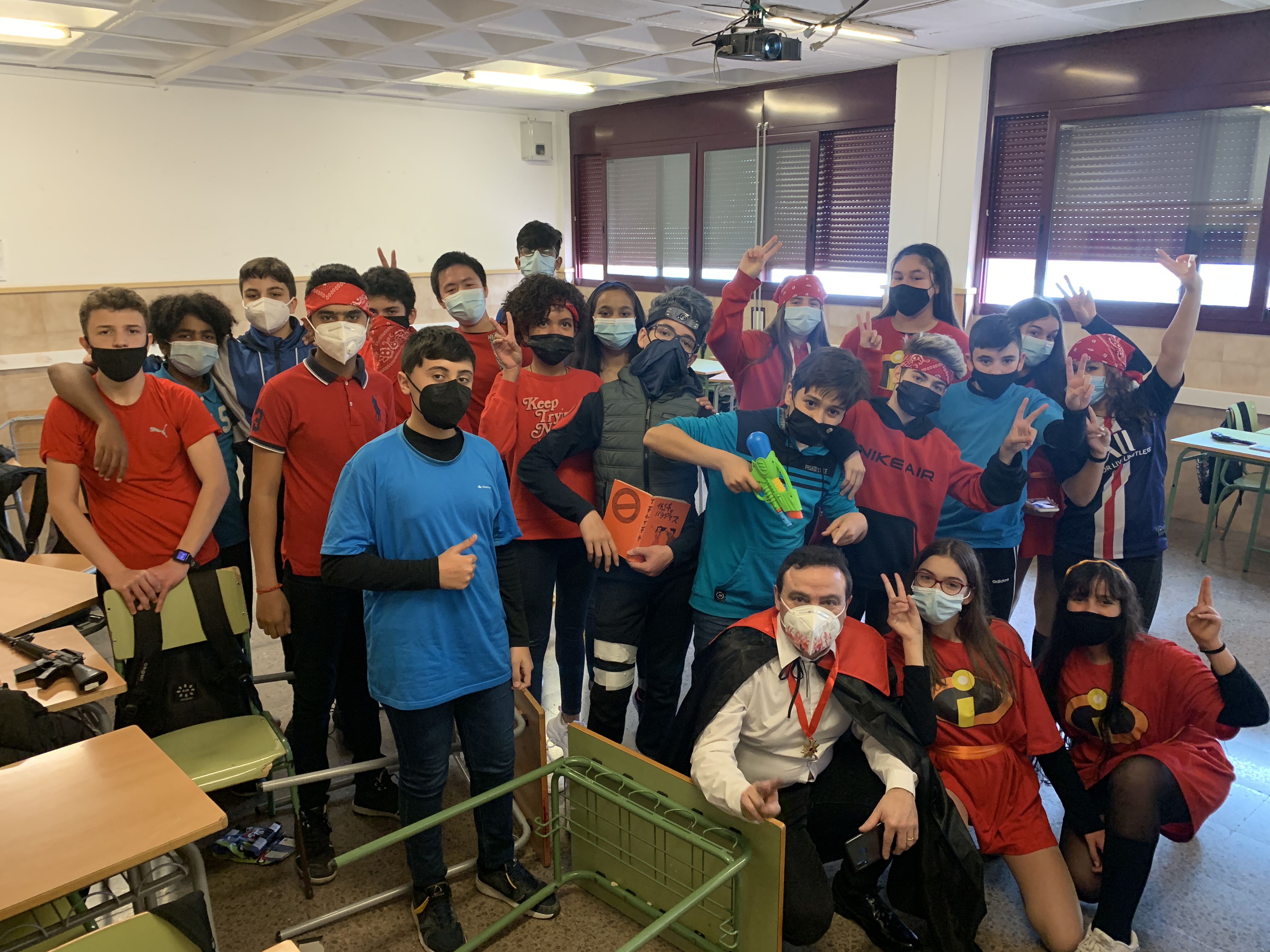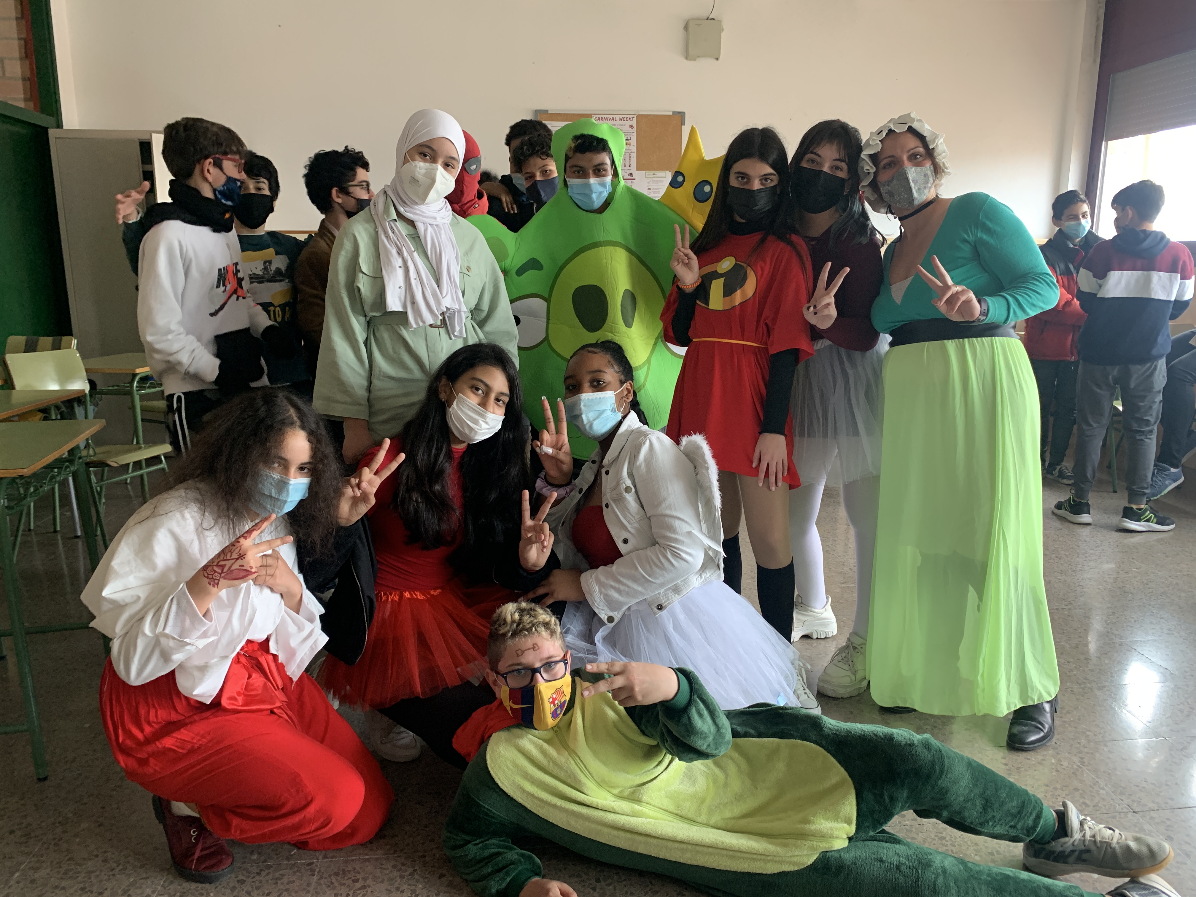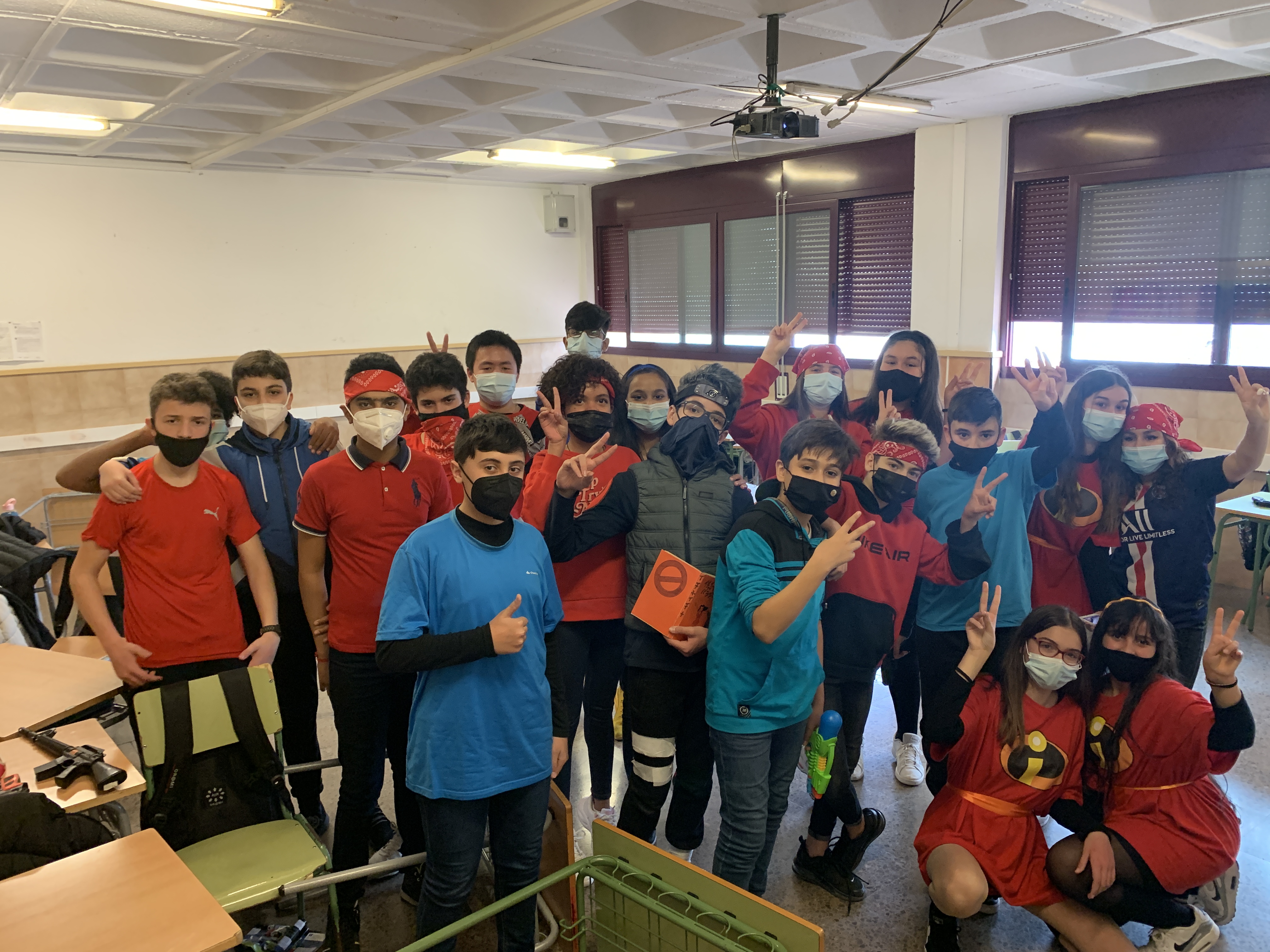 Avui, no hi havia consigna. El disfraç era lliure. Algunes classes han fet el mateix disfraç per tal de fer un ball.